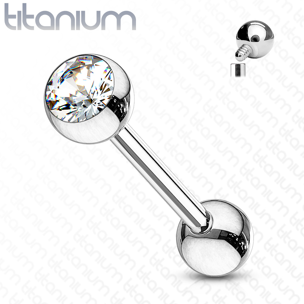 About this 1.6mm Titanium Barbell with 3mm Clear Gem Ball