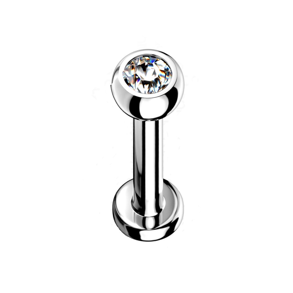 This 1.2mm Titanium Labret with Clear Gem is manufactured from grade 23 solid titanium so will not rust, corrode or stain