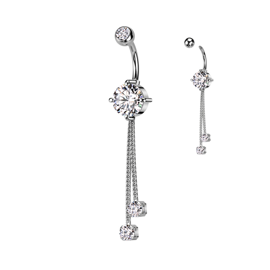 Belly Bar with 2 Clear CZ Rope Chain Dangles