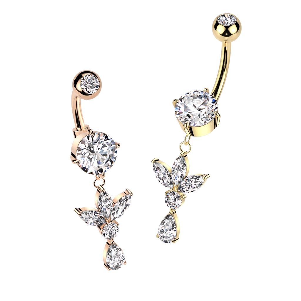 About this Belly Bar with a Leaf and Tear Drop Dangle