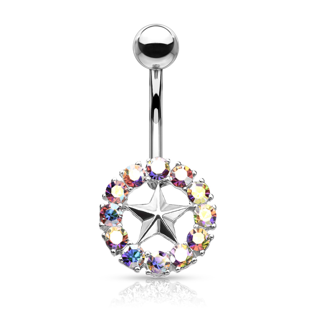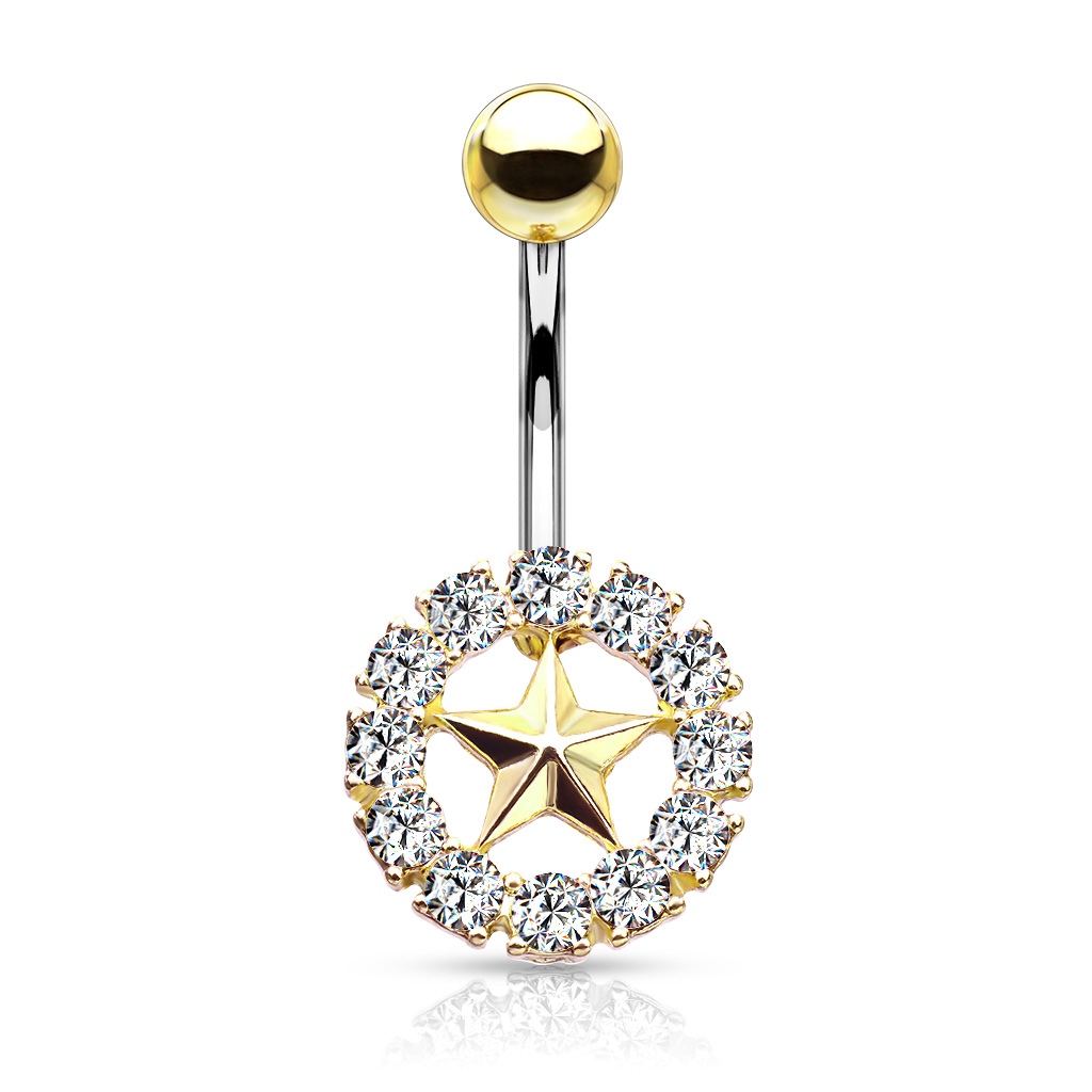 The bar is manufactured from Surgical Stainless Steel so will not rust, corrode or stain. The casing for the star contains brass and rhodium. Surgical Steel jewellery is best for healed piercings but as it contains traces of nickel it may not be suitable for those with a nickel allergies