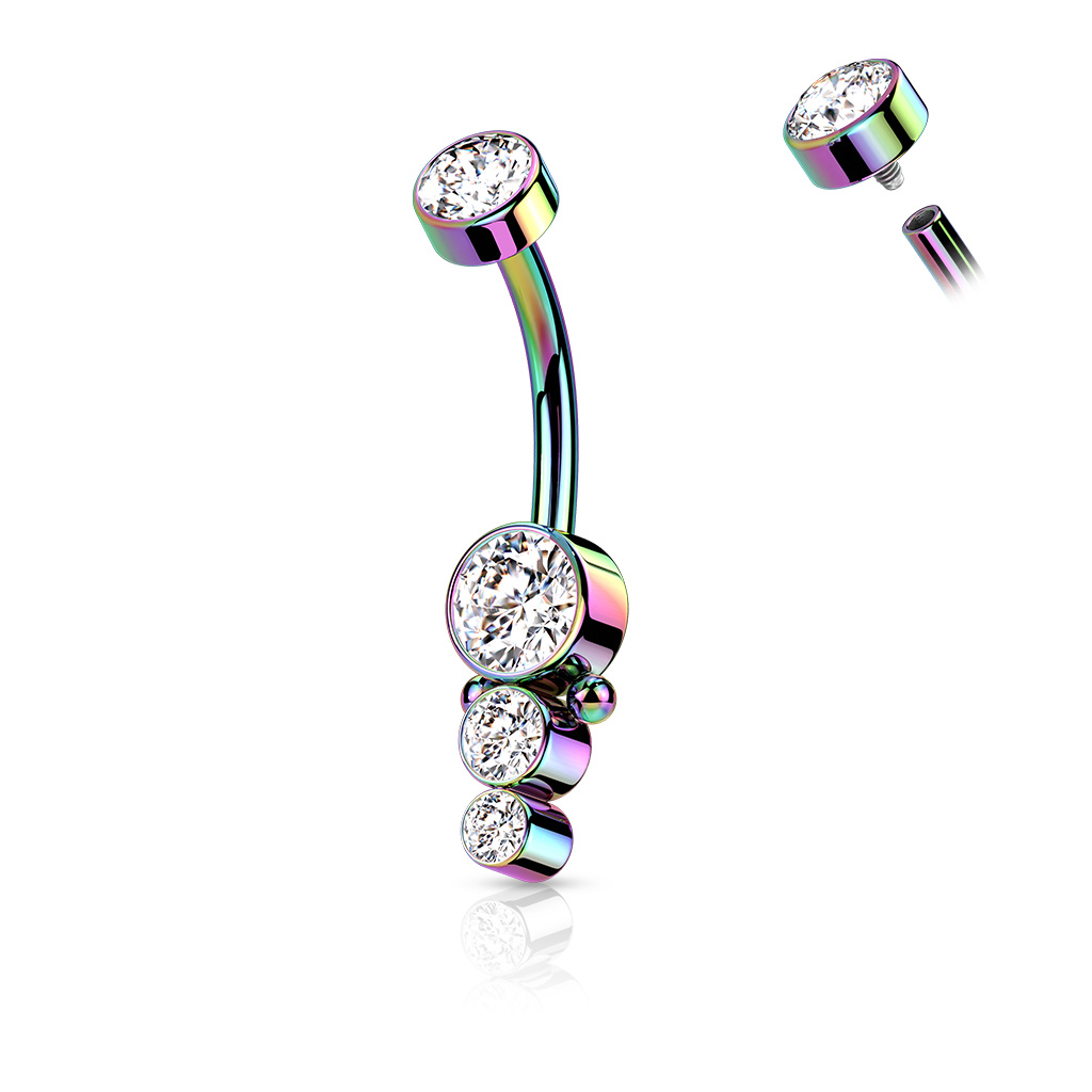 About this Belly Bar with a Triple Clear Round CZ Cluster Dropdown