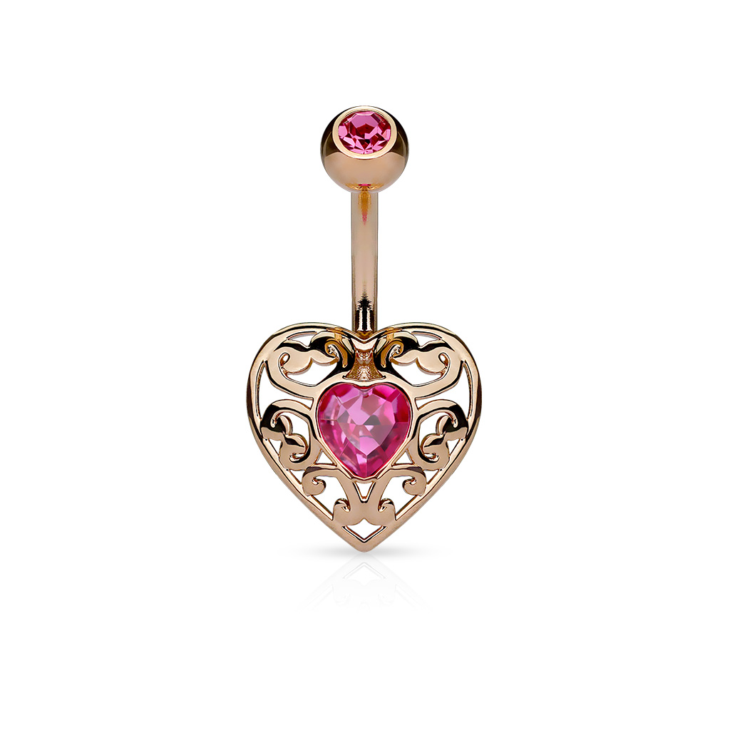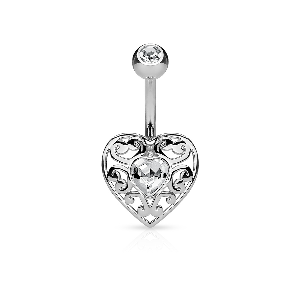 Belly Bar with a Vintage Filigree Heart