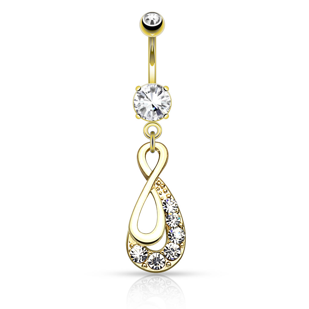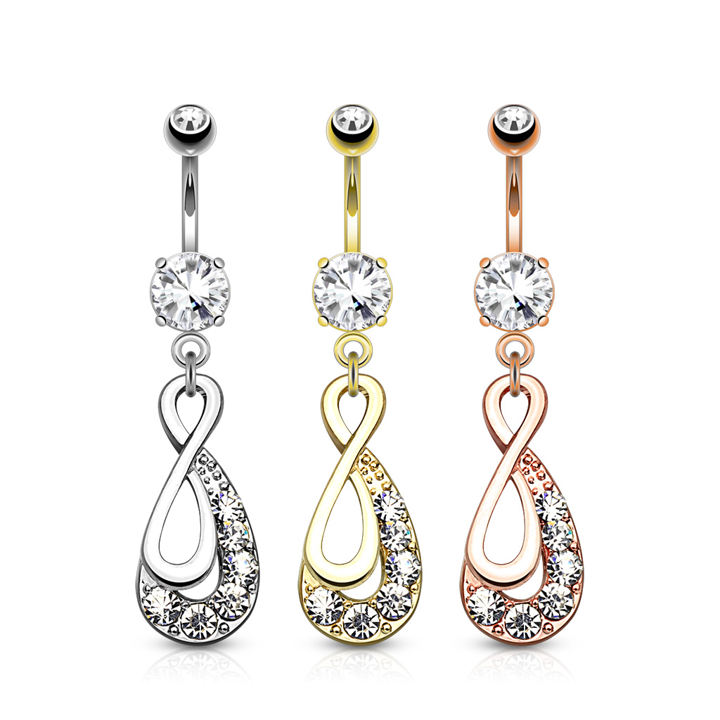 • The Belly Bar with an Infinity Drop Dangle is manufactured from Surgical Stainless Steel so will not rust, corrode or stain.
