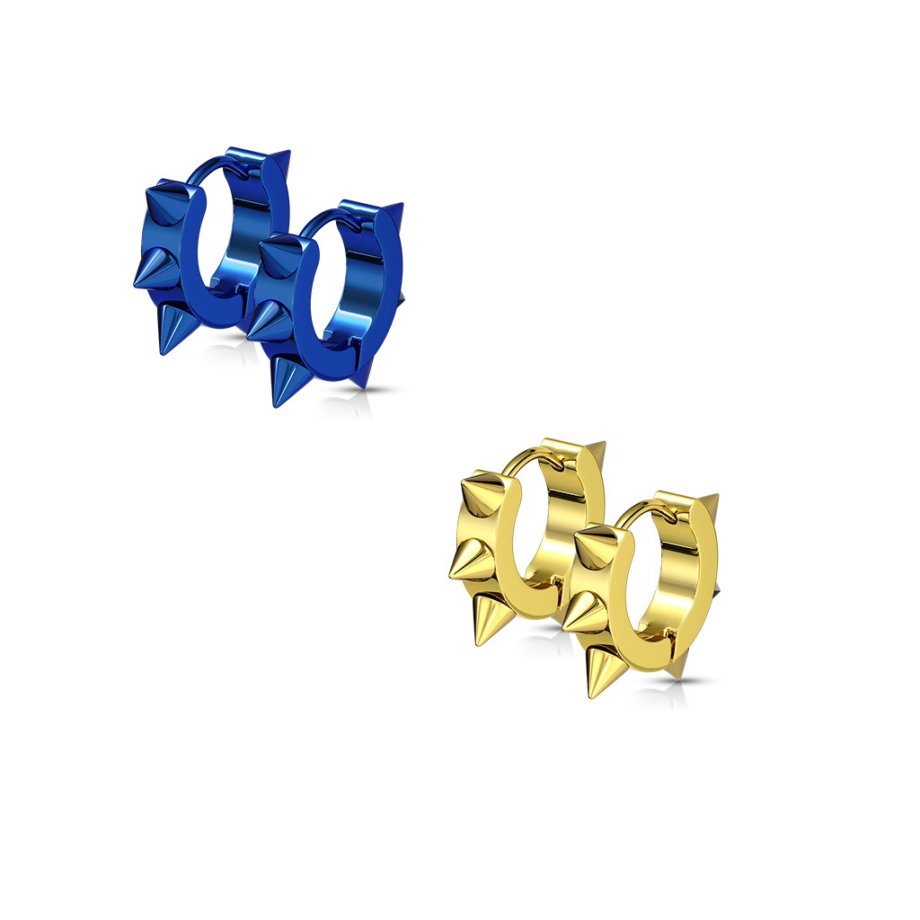 • These Blue Hoop Earrings with Spikes are manufactured from stainless steel so will not rust, corrode or stain. This jewellery is best for healed lobes. Stainless steel contains traces of nickel so may not be suitable for those with a nickel allergies. The spikes are rhodium plated brass