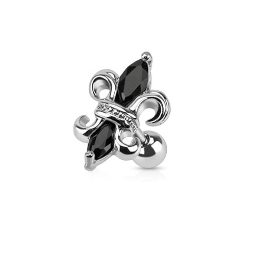 This Cartilage Barbell with a CZ Fleur De Lis is manufactured from surgical stainless steel so will not rust, corrode or stain.