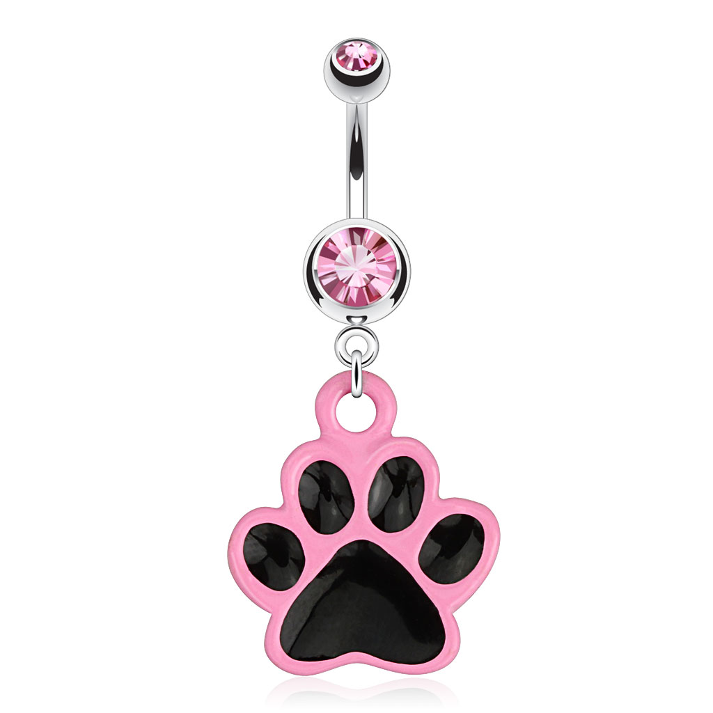 About this Belly Bar with a Pink CZ Gem and Pink Cat Paw Dangle
