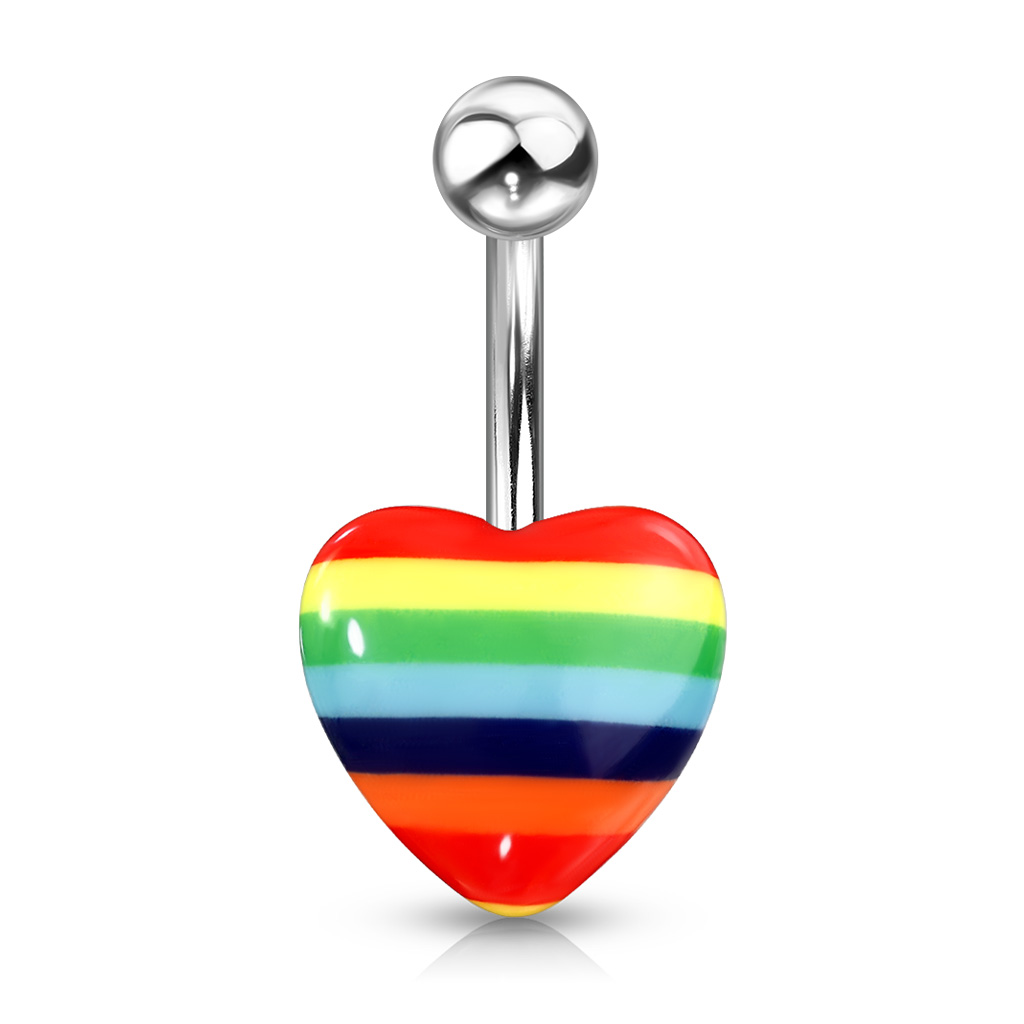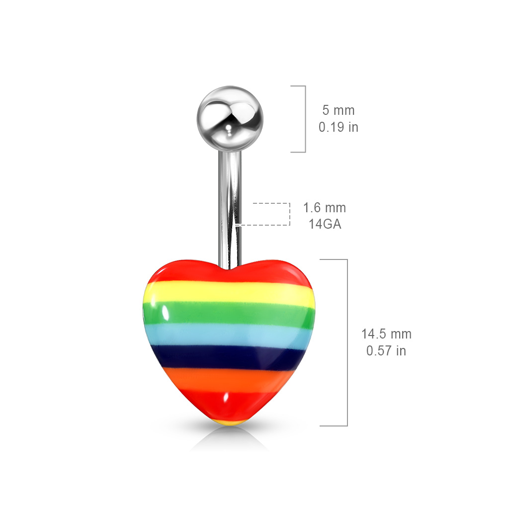 This Colourful Heart Belly Bar is manufactured from Surgical Stainless Steel so will not rust, corrode or stain. This jewellery is best for healed piercings. Surgical Stainless Steel contains traces of nickel so may not be suitable for those with a nickel allergies. The heart is acrylic