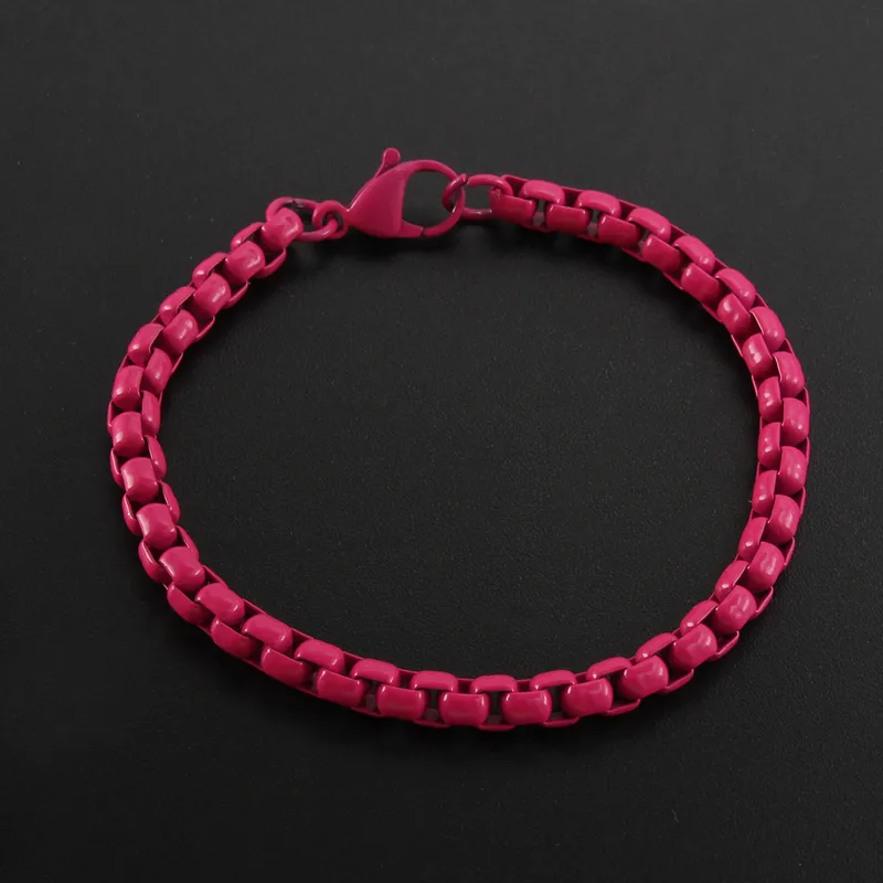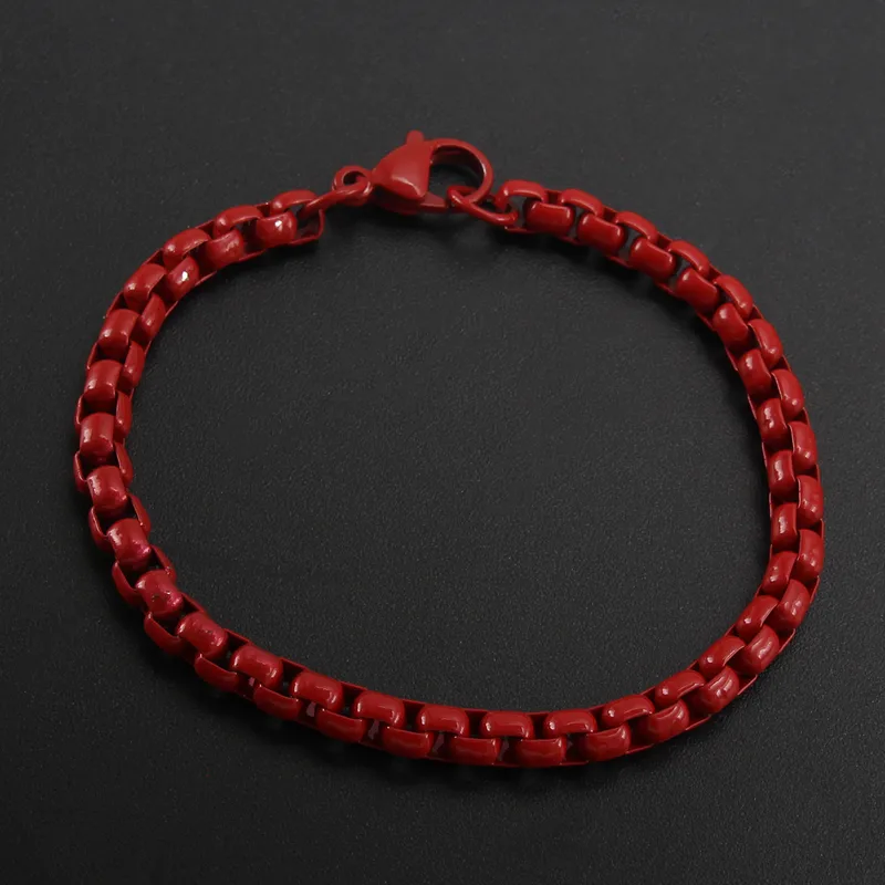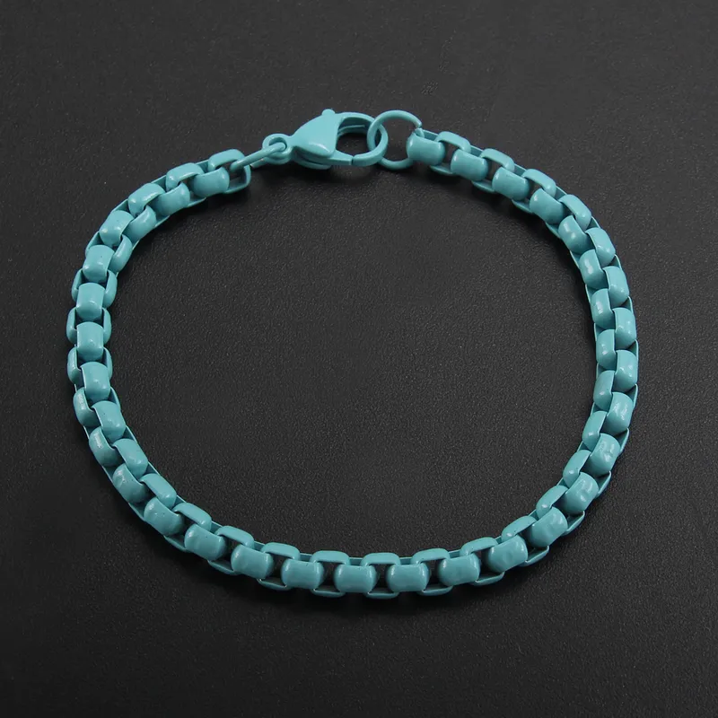 The bracelet is manufactured from stainless steel so will not rust, corrode or stain.