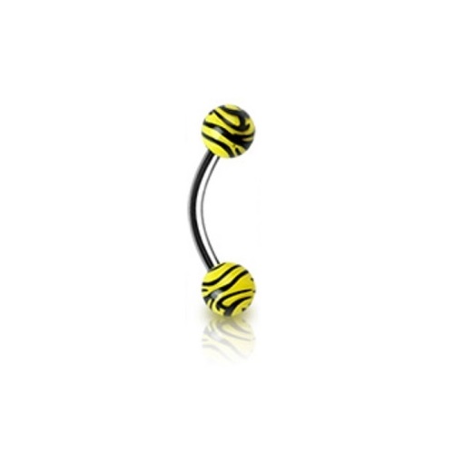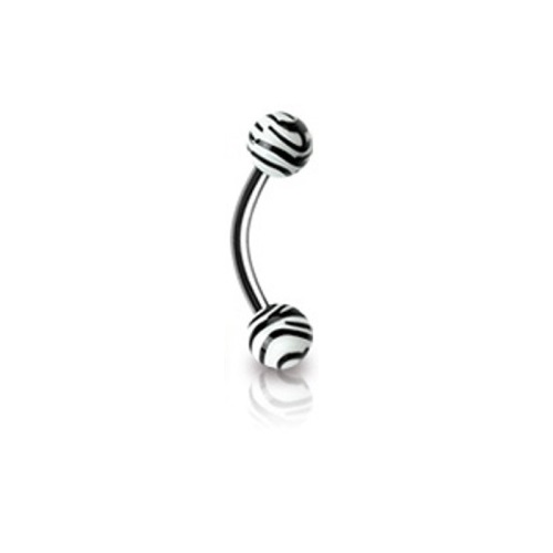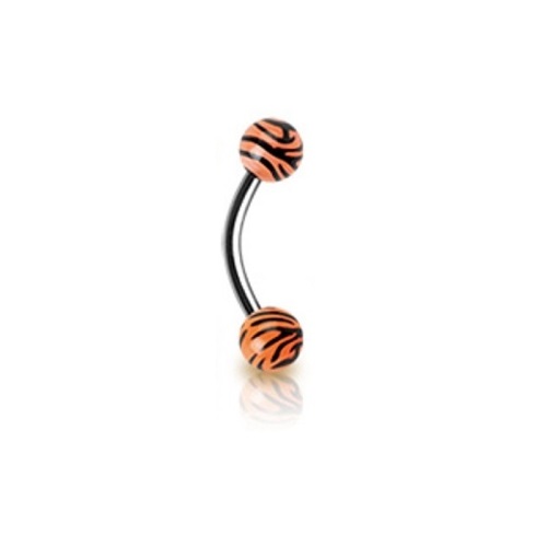 • This Curved Barbell with Tiger Stripe Balls is manufactured from Surgical Stainless Steel so will not rust, corrode or stain.