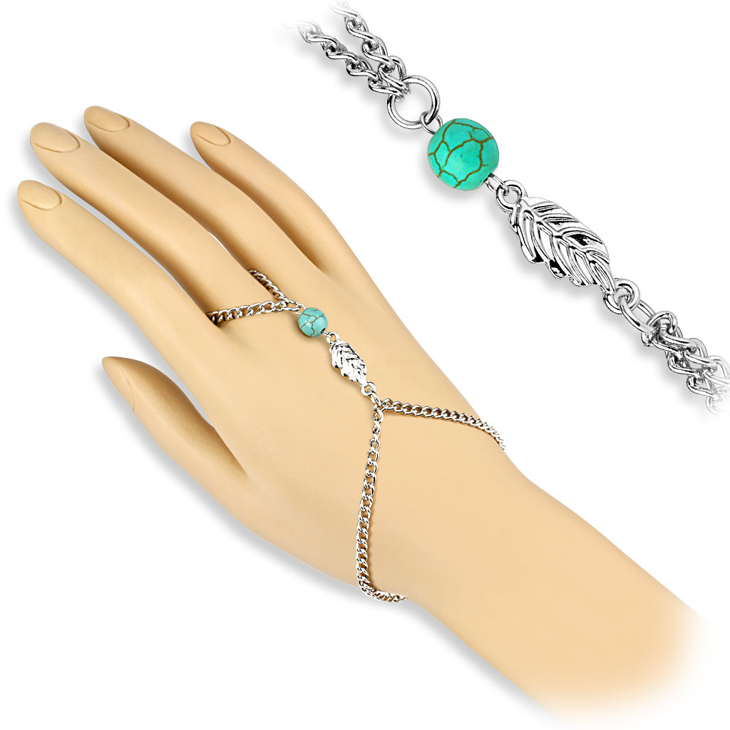 This bracelet is worn around your wrist and has a chain with a hoop that goes over your middle finger