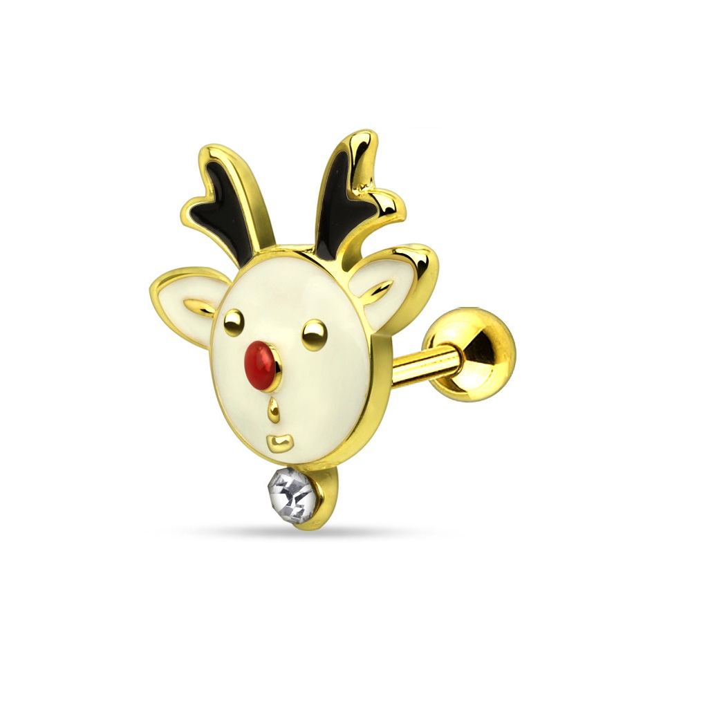 About this Gold Christmas Cartilage Barbell with a Rudolph Reindeer Head