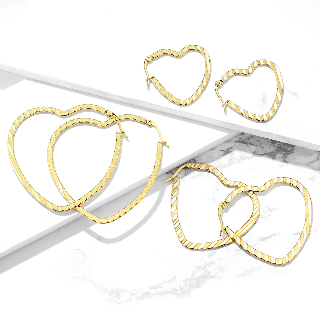 • The Heart Gold Hoop Earrings are manufactured from 316L surgical steel so they will not rust, corrode or stain. Stainless steel is best for healed piercings but as it contains traces of nickel it may not be suitable for those with a nickel allergies