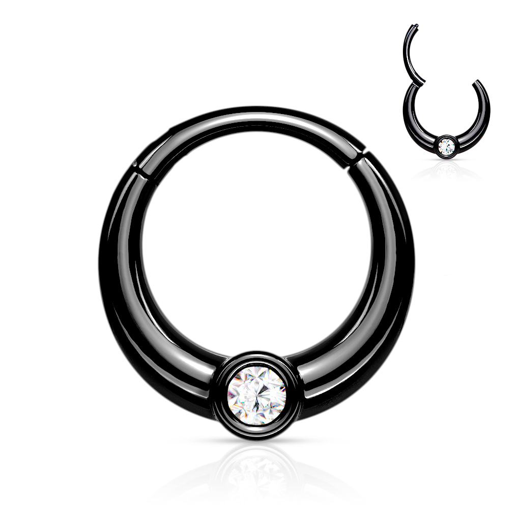 • The Hinged Segment Ring with Centred Front Facing 3mm CZ gem Ball is hinged so is easier to open and close and has less chance of being lost. The ball is fixed to one end so cannot be lost
