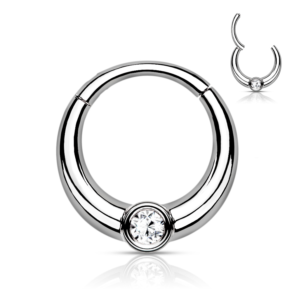 Hinged Segment Ring with Centred Front Facing 3mm CZ gem Ball