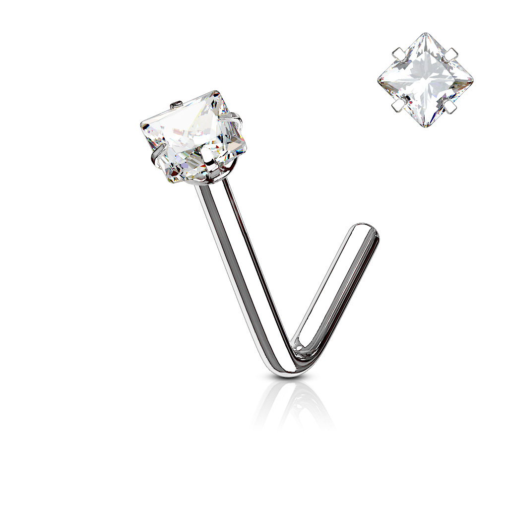 About this L-Bend Nose Stud with a Clear Square CZ Centre