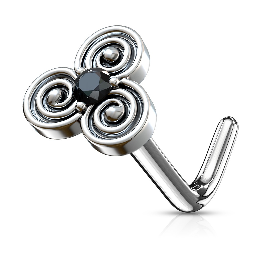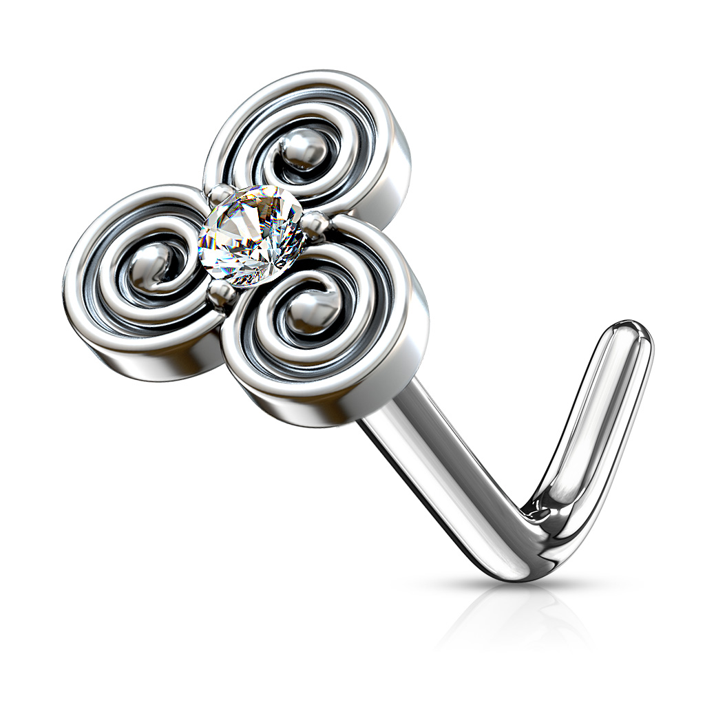 L-Bend Nose Stud with Tribal Swirl and CZ Top