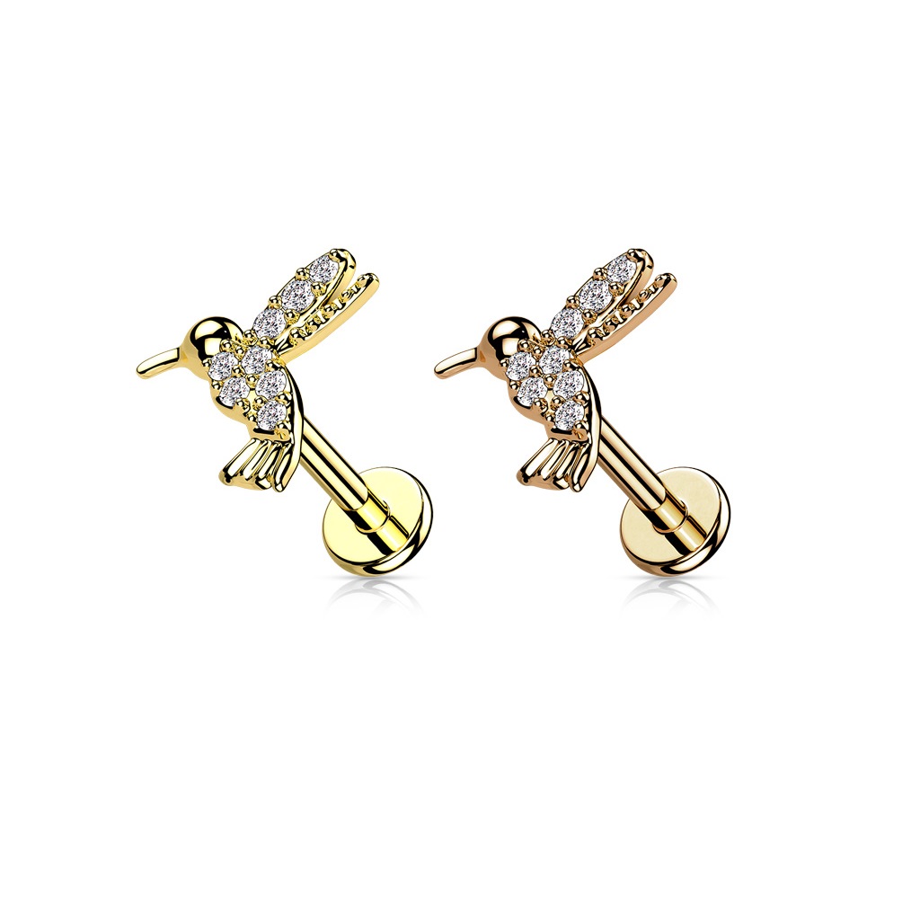 Labret with a Clear CZ Humming Bird
