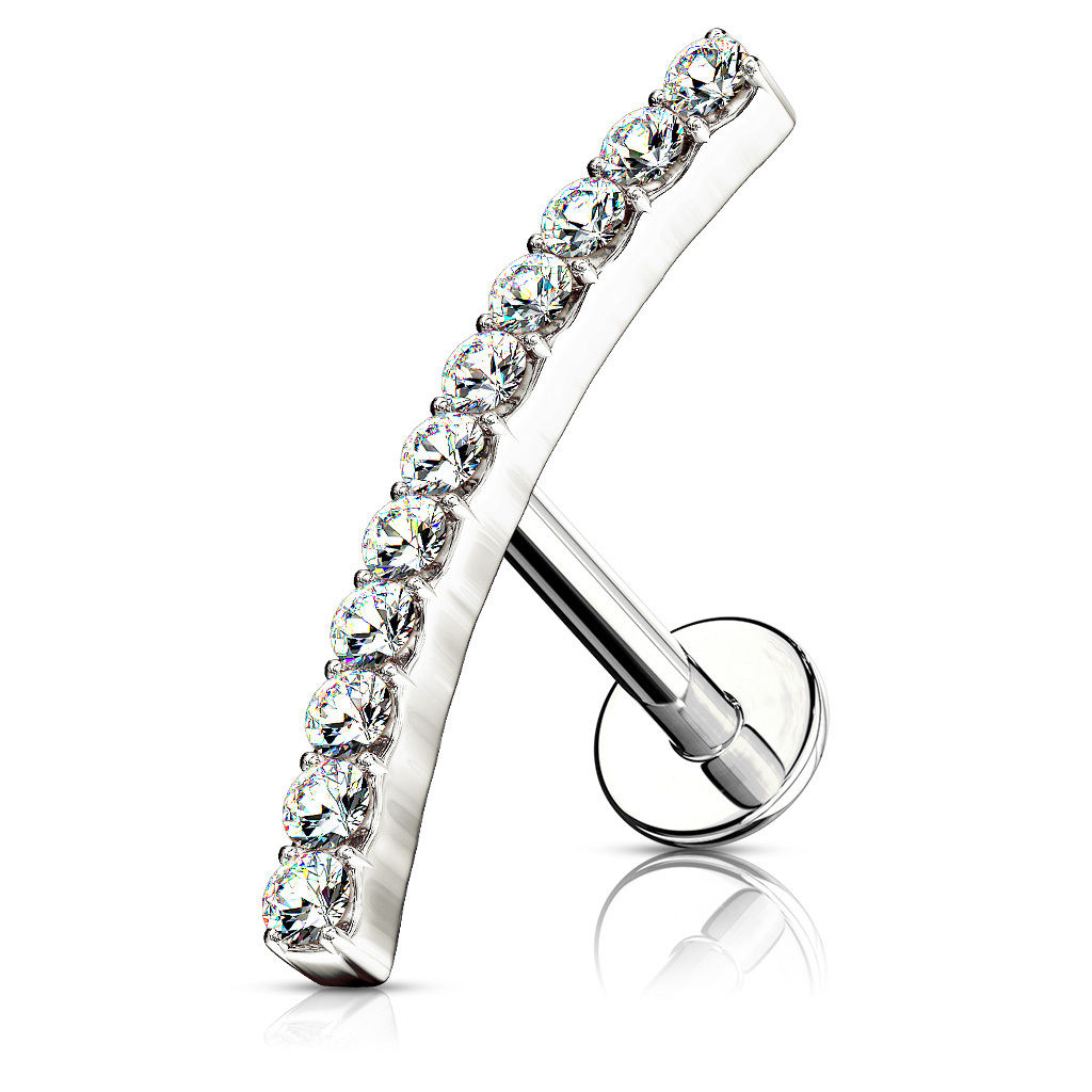 • This Labret with a Clear CZ Journey Curve is manufactured from Surgical Stainless Steel so will not rust, corrode or stain. The housing for the CZ Owl is manufactured from brass and rhodium. This jewellery is best for healed piercings. Surgical Stainless Steel contains traces of nickel so may not be suitable for those with a nickel allergies