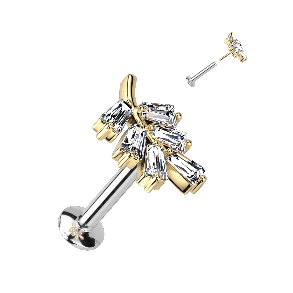 Labret with a Clear CZ Leaf