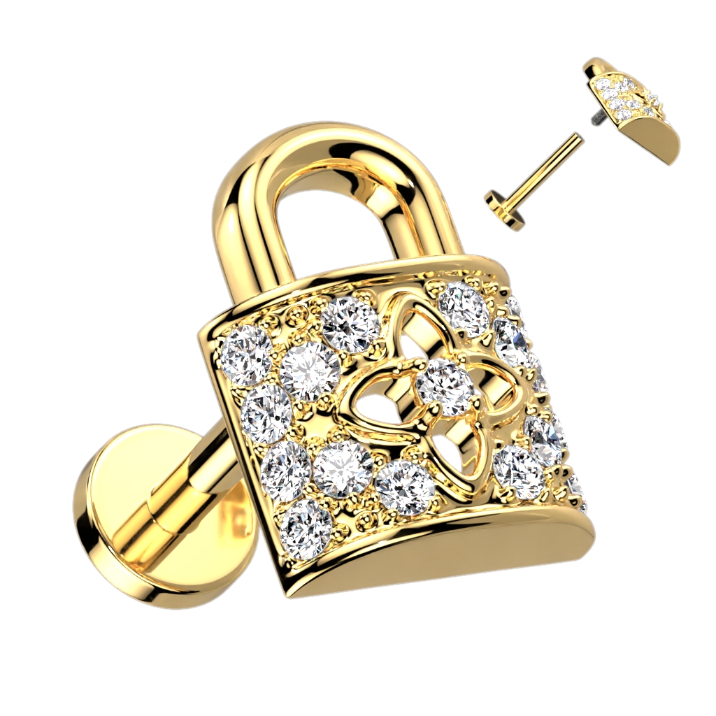 • This Gold Labret with a Clear CZ Lock is manufactured from Surgical Stainless Steel so will not rust, corrode or stain. The housing for the CZ Owl is manufactured from brass and rhodium. This jewellery is best for healed piercings. Surgical Stainless Steel contains traces of nickel so may not be suitable for those with a nickel allergies