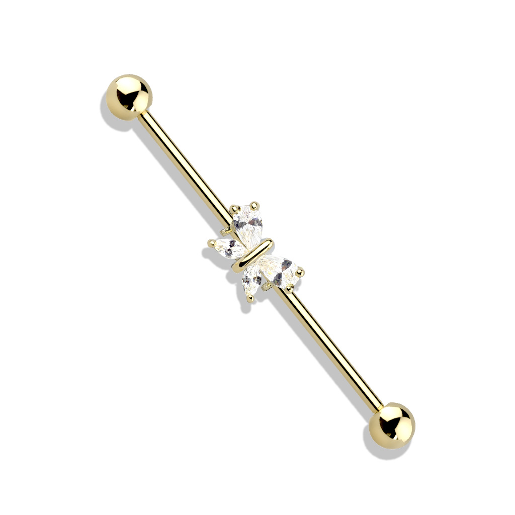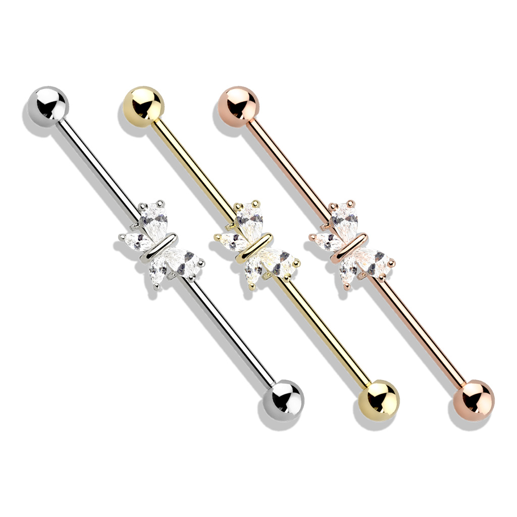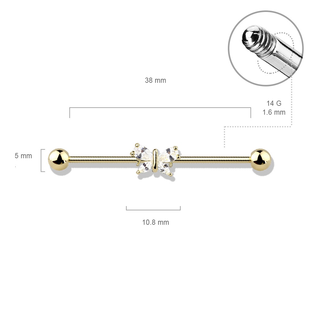 • The Butterfly is manufactured from rhodium and has a 11mm diameter. The Butterfly attachment can be moved up or down the bar as required and has small o’ring to keep it at the angle / length you require.