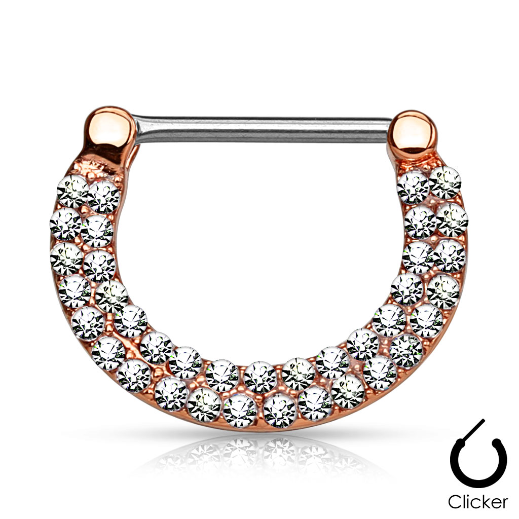 • The Nipple Hanger with Paved Double Lined Crystals is manufactured from Surgical Stainless Steel so will not rust, corrode or stain. The casing for the crystals contain traces of brass and rhodium. Surgical Steel jewellery is best for healed piercings but as it contains traces of nickel it may not be suitable for those with a nickel allergies