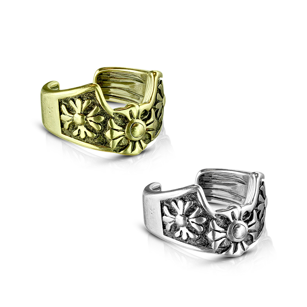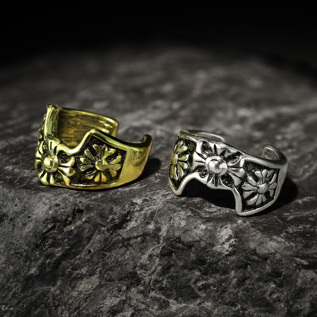 - The ear cuff is manufactured from rhodium plated brass. It contains traces of nickel so may not be suitable for those with a nickel allergy