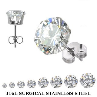 • The Stud Earrings with Round Clear CZ gem are manufactured from 316L surgical steel so they will not rust, corrode or stain. Stainless steel is best for healed piercings but as it contains traces of nickel it may not be suitable for those with a nickel allergies