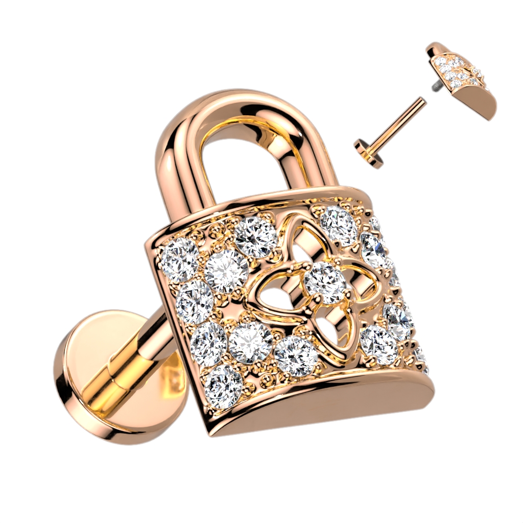 • This Rose Gold Labret with a Clear CZ Lock is manufactured from Surgical Stainless Steel so will not rust, corrode or stain. The housing for the CZ Owl is manufactured from brass and rhodium. This jewellery is best for healed piercings. Surgical Stainless Steel contains traces of nickel so may not be suitable for those with a nickel allergies