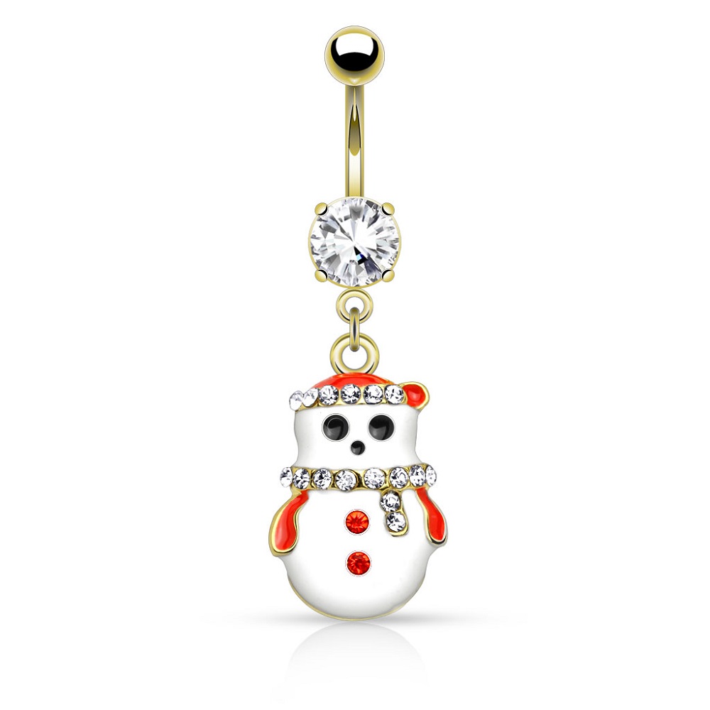 • This Snowman Belly Bar with Gold trim and CZ gems is manufactured from Stainless Steel so will not rust, corrode or stain. This jewellery is best for healed piercings. Surgical Stainless Steel contains traces of nickel so may not be suitable for those with a nickel allergies. The Santa dangle is rhodium plated brass