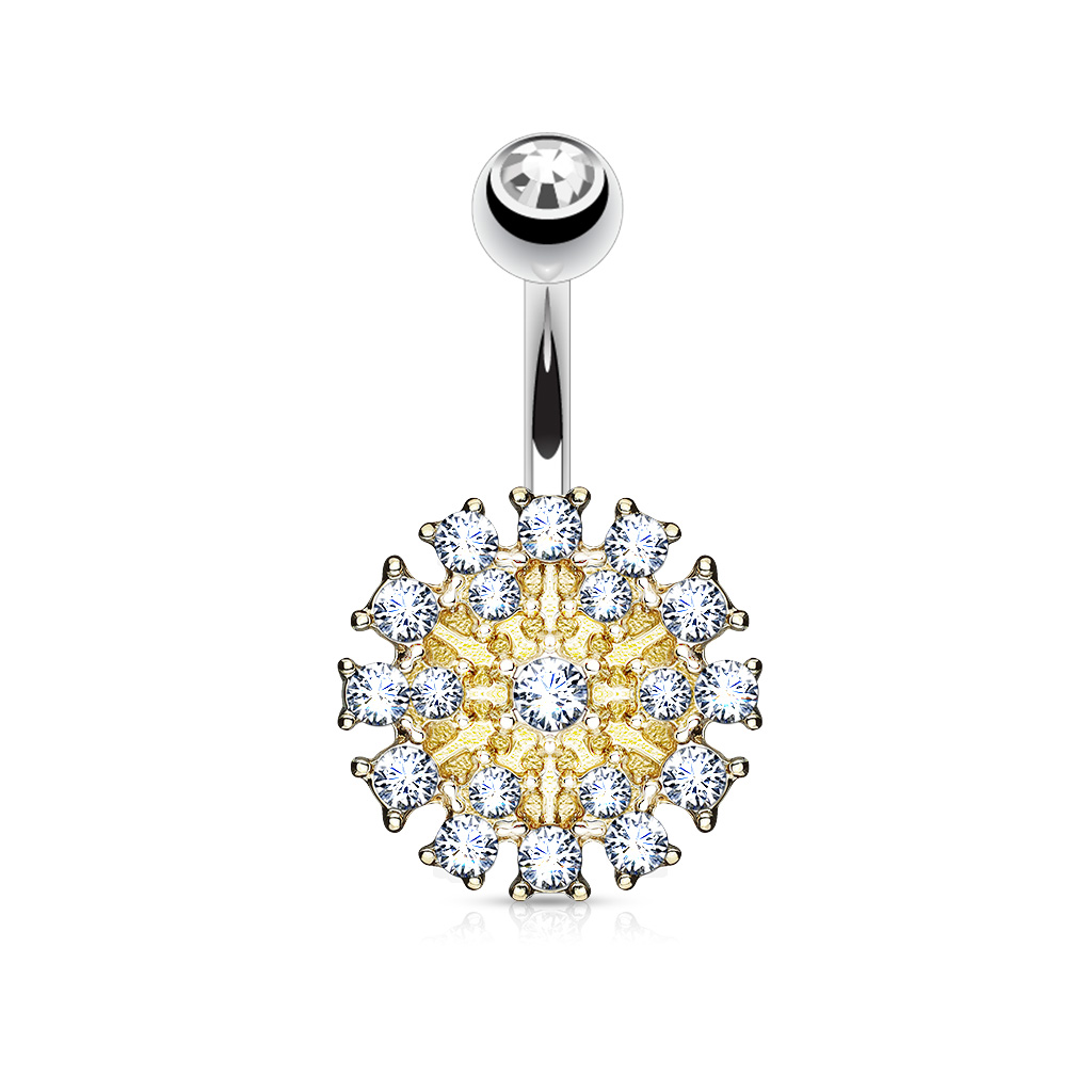 This Sunburst Belly Bar is manufactured from Surgical Stainless Steel so will not rust, corrode or stain.