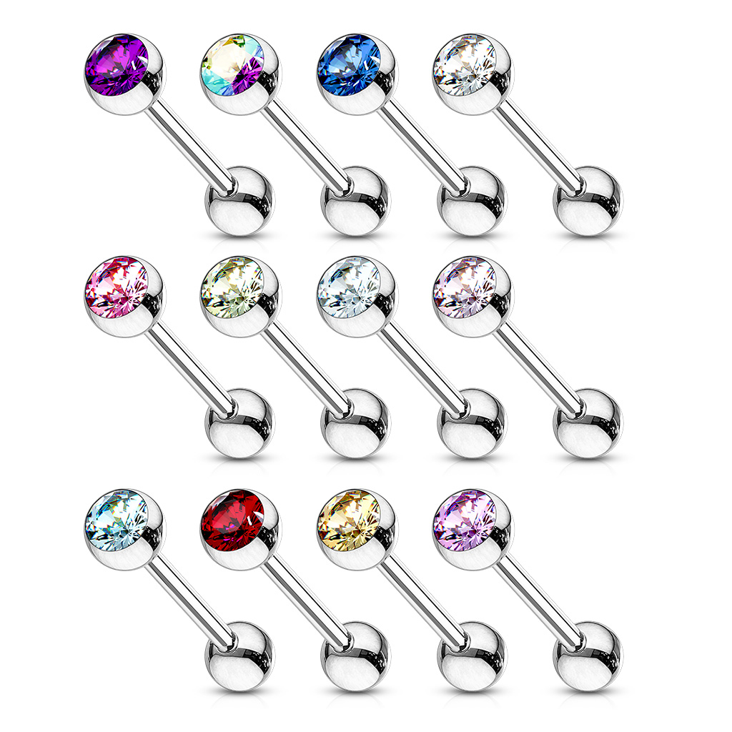 The Tongue Bar with a CZ Gem Ball is manufactured from Surgical Stainless Steel so will not rust, corrode or stain.