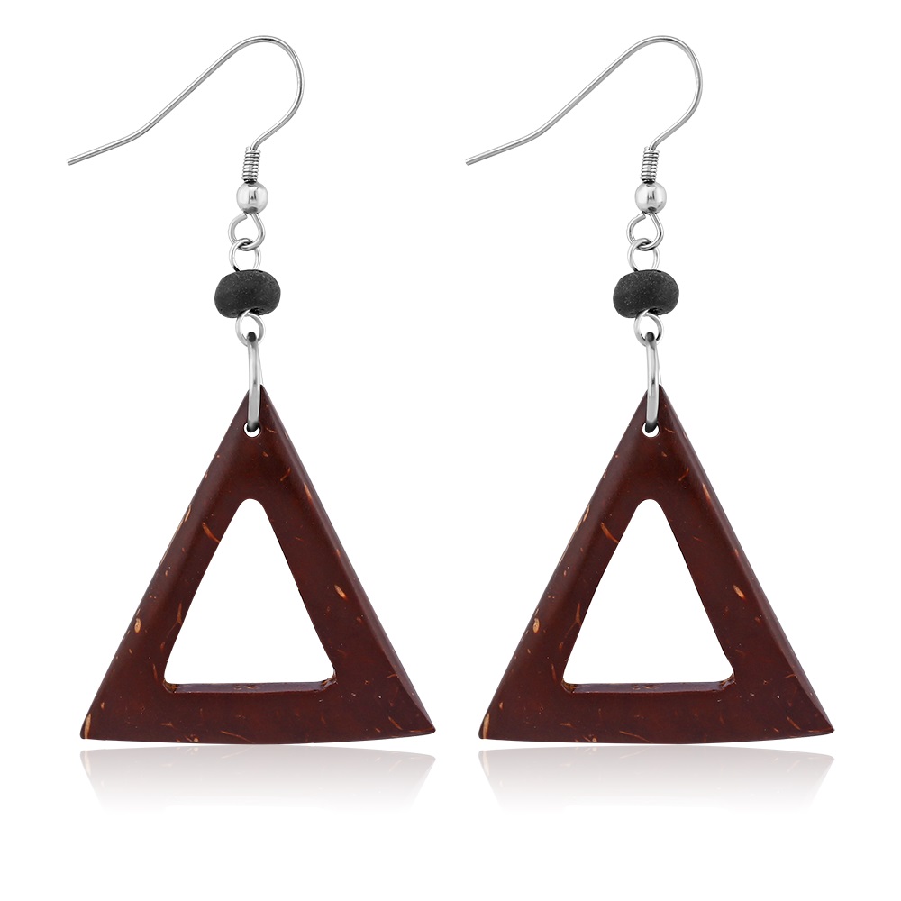 The earrings are made from coconut shell and are individually carved. For this reason they may differ slightly from the pictures
