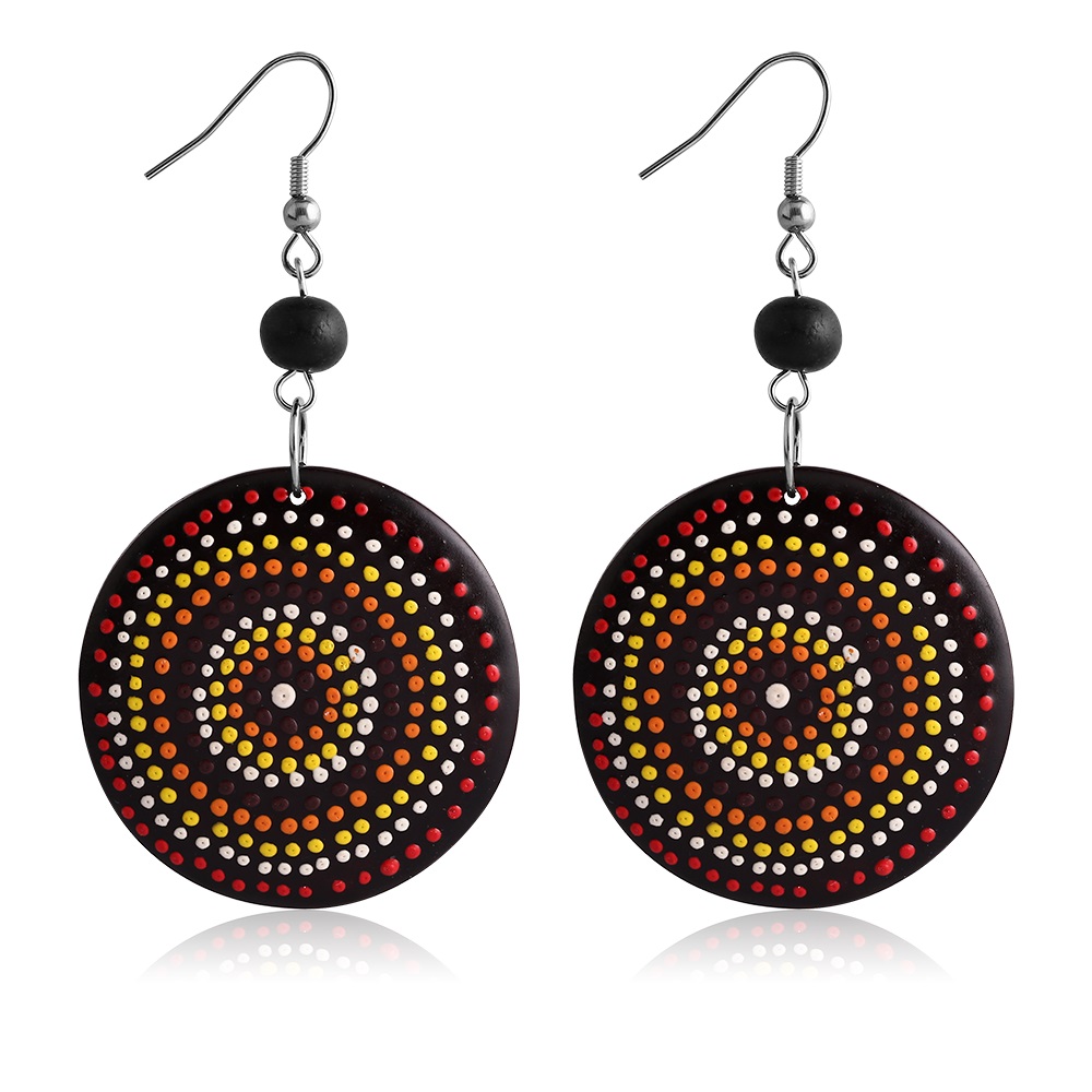 The earrings are made from wood and are individually carved and painted. For this reason they may differ slightly from the pictures