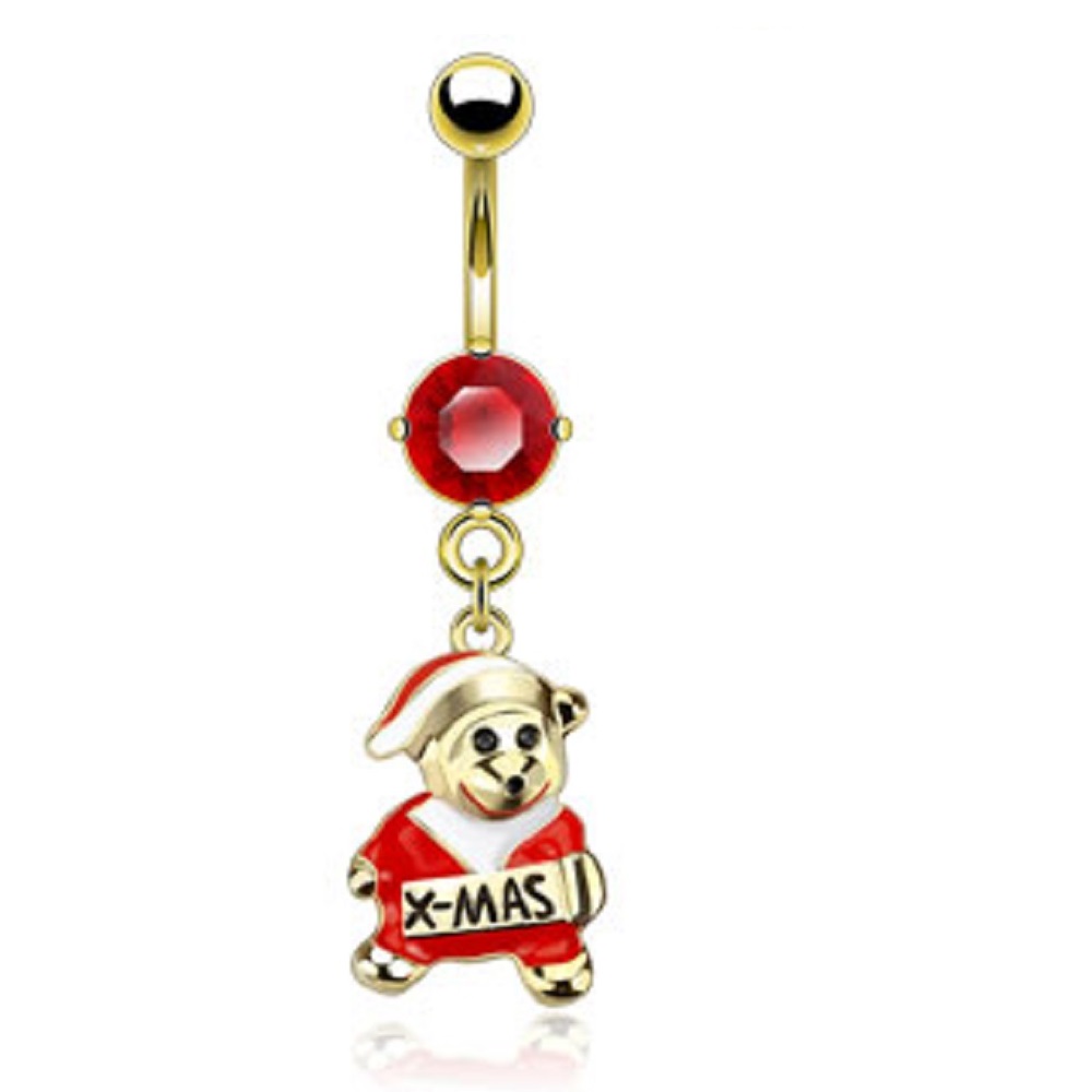 This X-mas Teddy Bear Belly Bar with Red CZ gem is manufactured from Stainless Steel so will not rust, corrode or stain. This jewellery is best for healed piercings. Surgical Stainless Steel contains traces of nickel so may not be suitable for those with a nickel allergies. The Santa dangle is rhodium plated brass